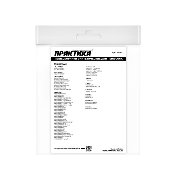 Мешки ПРАКТИКА для пылесосов KARCHER A 1000, T 7/1 Professional, вертикальный, до 9л, синтетика, 2 шт. - цена, фото, технические характеристики