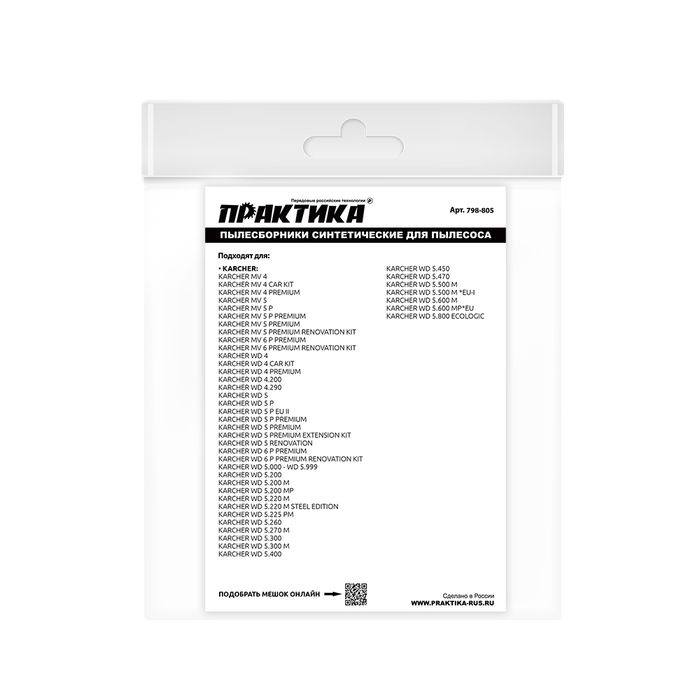 Мешки ПРАКТИКА для пылесосов KARCHER MV 4, WD 5, WD 4 CAR KIT, вертикальный, до 30л, синтетика., уп. 2 шт. - цена, фото, технические характеристики