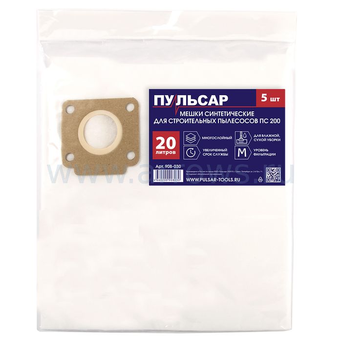 Мешок для пылесоса ПУЛЬСАР ПС 200 синтетический одноразовый 20 литров (5 шт) - цена, фото, технические характеристики
