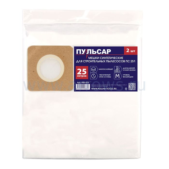 Мешок для пылесоса ПУЛЬСАР ПС 251 синтетический одноразовый 25 литров (2 шт) - цена, фото, технические характеристики