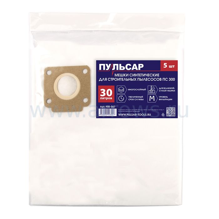 Мешок для пылесоса ПУЛЬСАР ПС 300 синтетический одноразовый 30 литров (5 шт) - цена, фото, технические характеристики