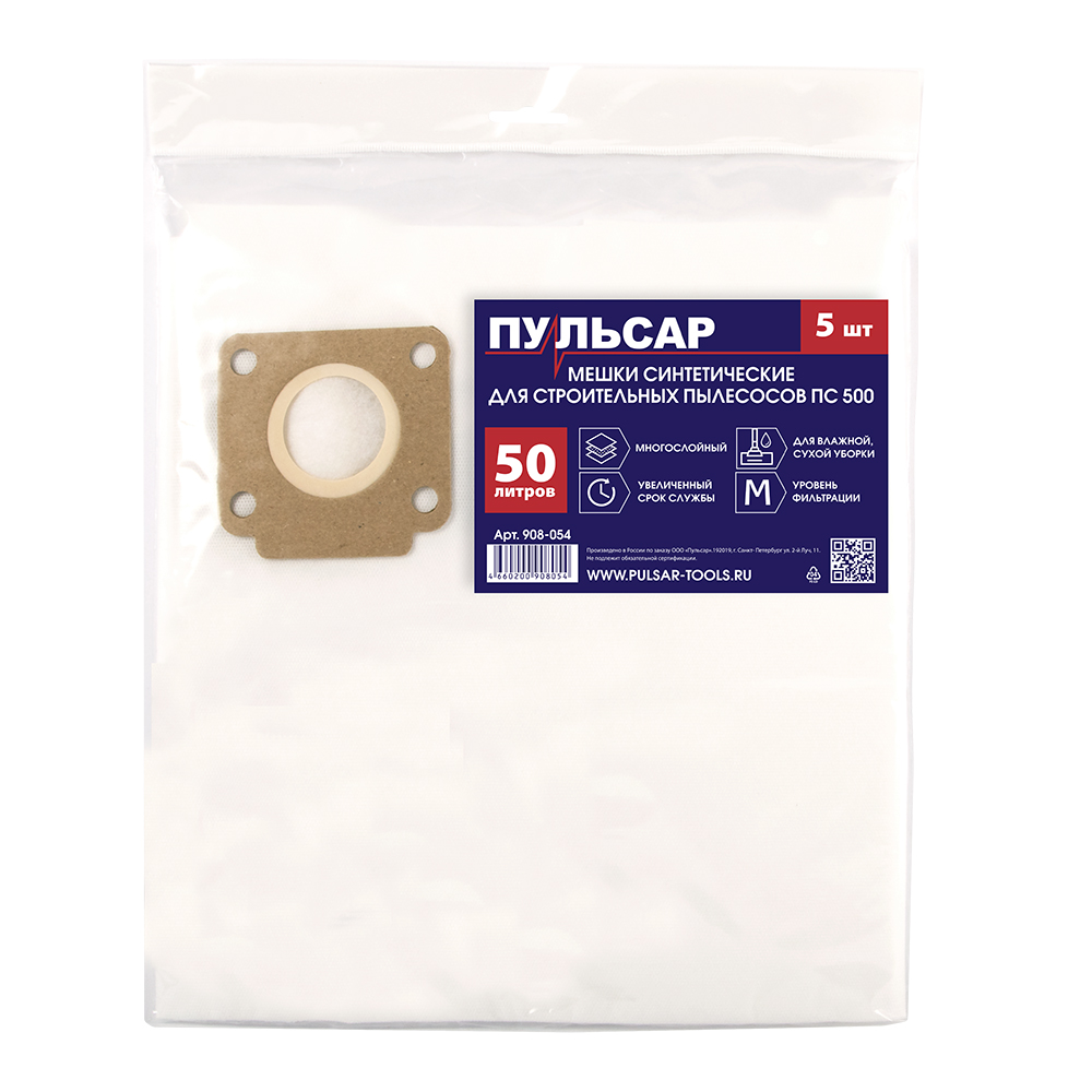 Мешок для пылесоса ПУЛЬСАР ПС 500 синтетический одноразовый 50 литров (5 шт) - цена, фото, технические характеристики