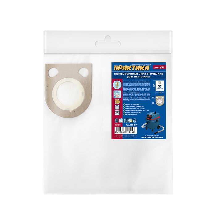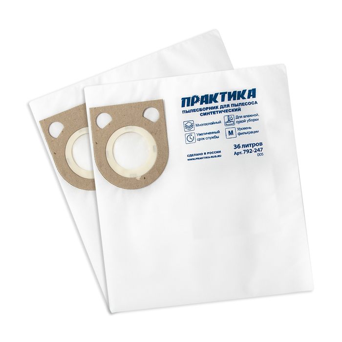 Мешки ПРАКТИКА для пылесосов HITACHI, KRESS, METABO, BOSCH GAS 25 и др., до 36л, синтетика, уп.2шт. - цена, фото, технические характеристики