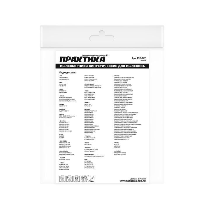 Мешки ПРАКТИКА для пылесосов HITACHI, KRESS, METABO, BOSCH GAS 25 и др., до 36л, синтетика, уп.2шт. BOSCH GAS 25 и др., до 36л, синтетика, уп.2шт