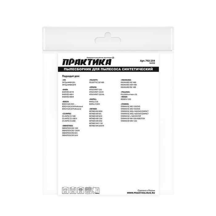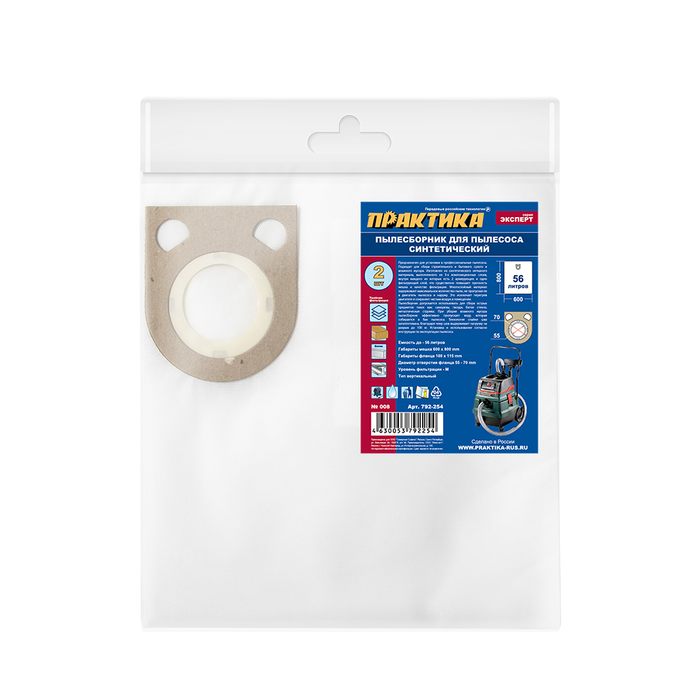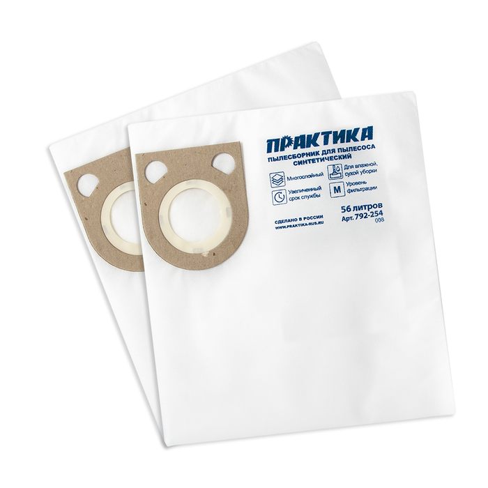 Мешки ПРАКТИКА для пылесосов BOSCH, METABO, STARMIX и др., до 56л, синтетика, уп. 2шт. - цена, фото, технические характеристики