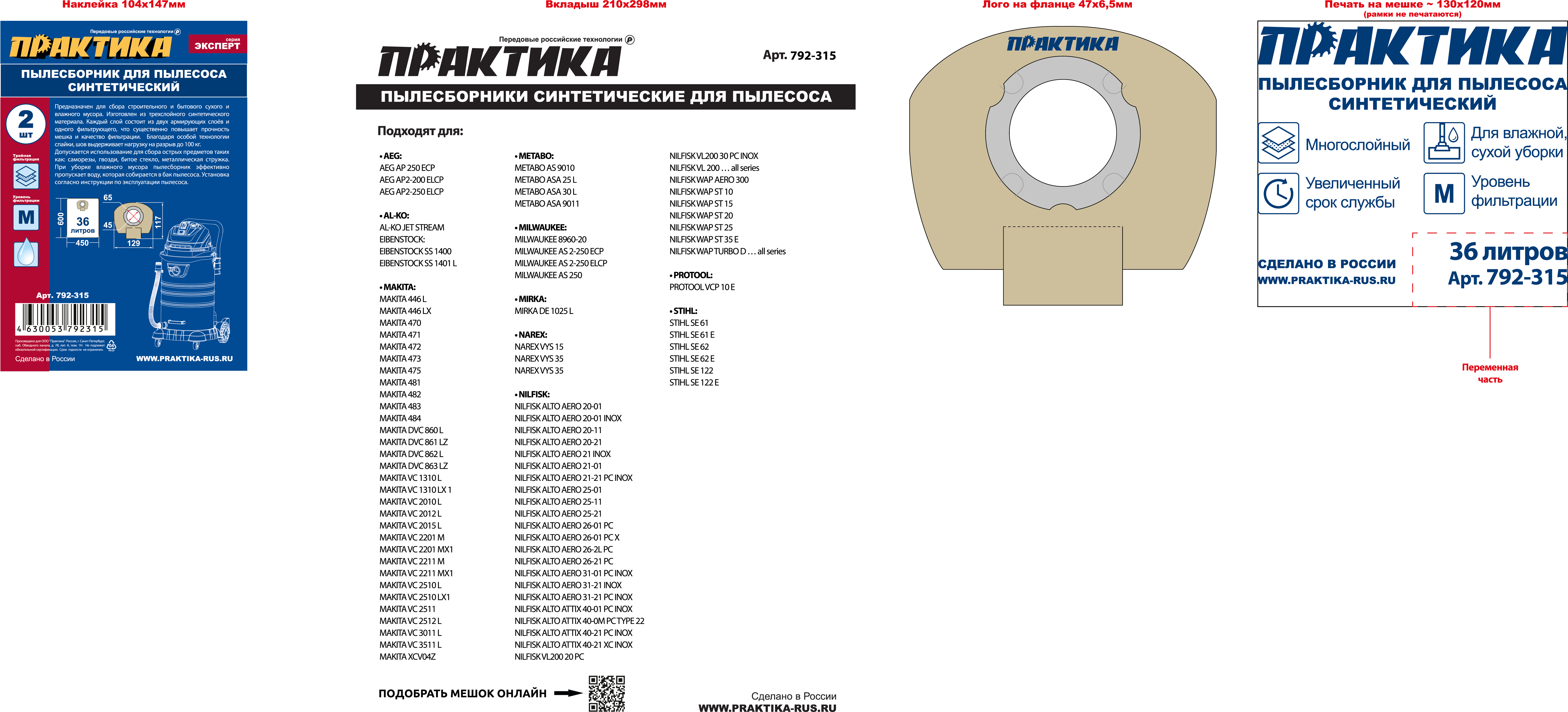 Мешки ПРАКТИКА для пылесосов AEG, MAKITA, STIHL и др., до 36л, синтетика, уп. 2шт. до 36л, синтетика, уп. 2шт.