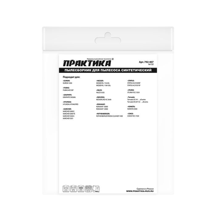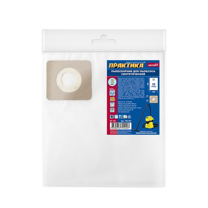 Мешки ПРАКТИКА для пылесосов FUBAG, REDVERG, STATUS и др., до 32л, синтетика уп. 2шт. - цена, фото, технические характеристики