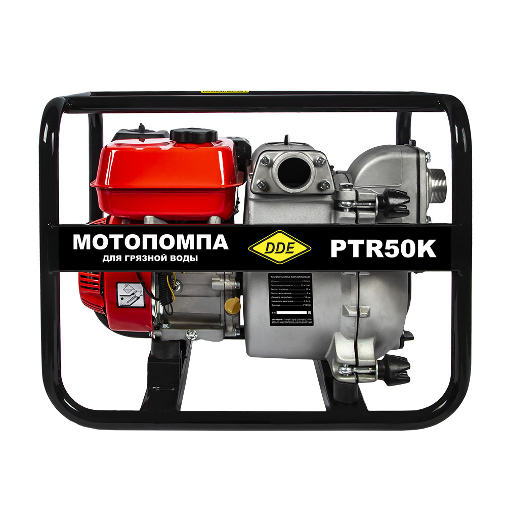 Мотопомпа бензиновая для грязной воды DDE PTR50K (500 л/мин, 50 мм, подъем 20 м, 5,5 л.c.) - цена, фото, технические характеристики