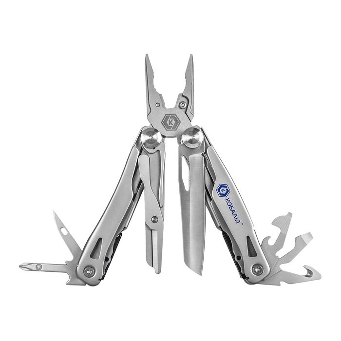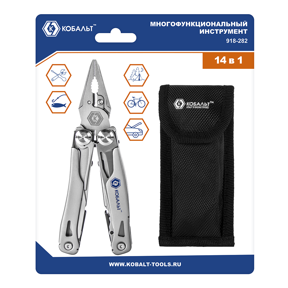 Мультитул КОБАЛЬТ 14 в 1, корпус из нерж.стали, 2-х комп. рукоятки из алюминия и ABS пластика, чехол для хранения, блистер (918-282) - цена, фото, технические характеристики