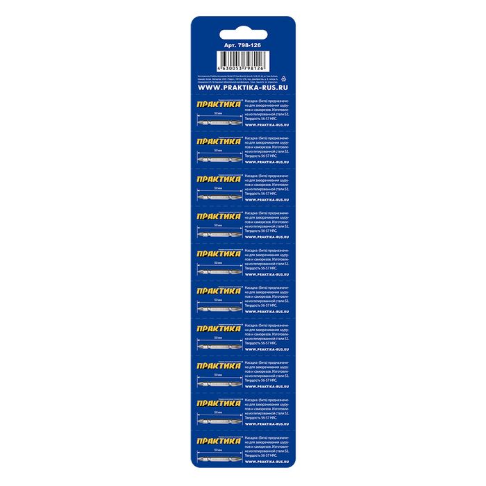 Набор бит ПРАКТИКА "Мастер" PH2 / PZ2 50мм двусторонняя, (в ленте 10 одиночных)