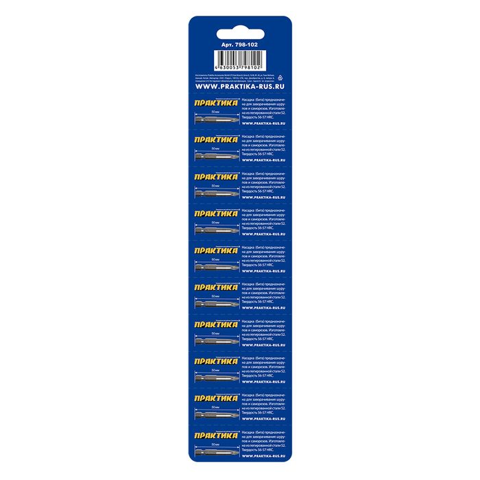 Набор бит ПРАКТИКА "Мастер" PH2 50мм, (в ленте 10 одиночных) (798-102)