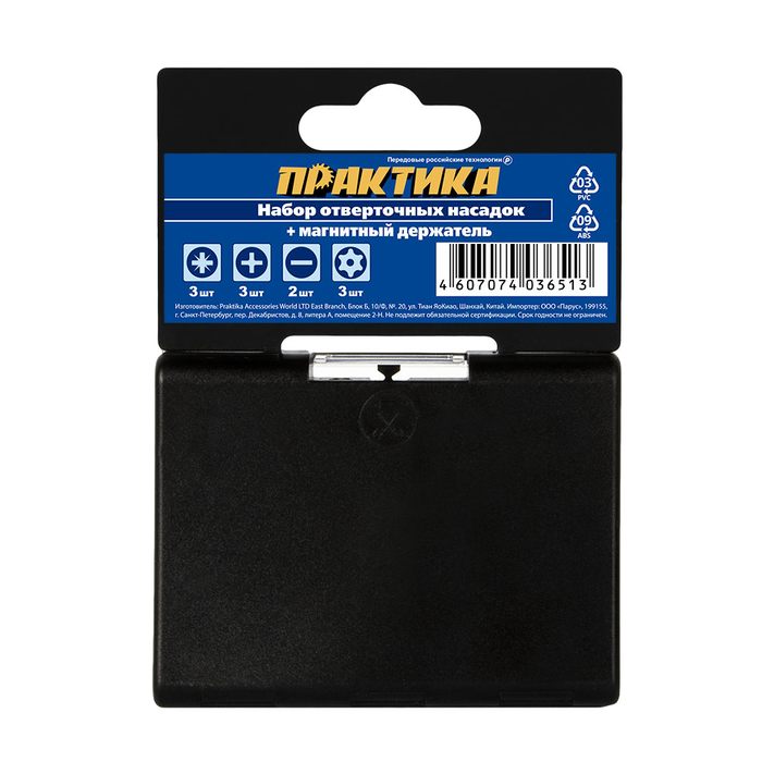 Набор бит ПРАКТИКА "Профи" 12шт PH 3шт PZ 3шт Torx 3шт SL 2шт x 25мм держатель, кассета (036-513)