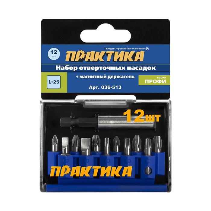 Набор бит ПРАКТИКА "Профи" 12шт PH 3шт PZ 3шт Torx 3шт SL 2шт x 25мм держатель, кассета (036-513) - цена, фото, технические характеристики