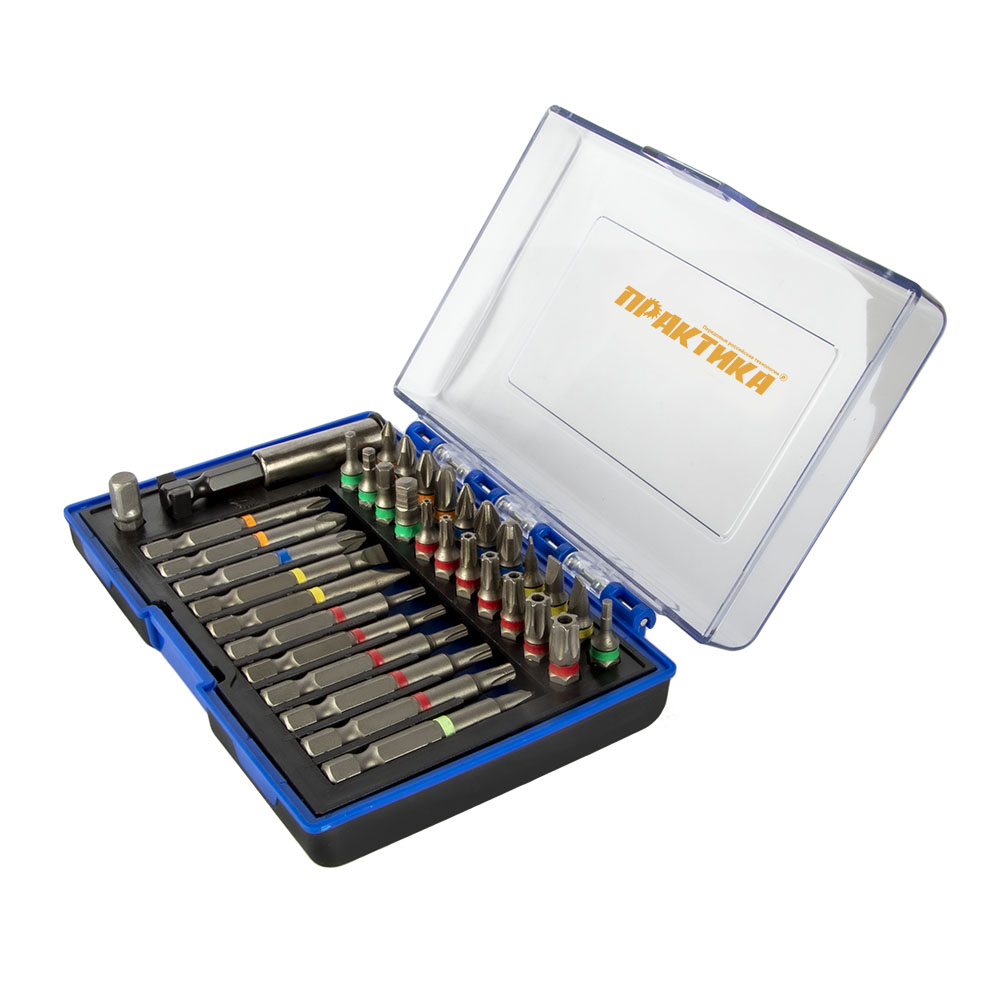 Набор бит ПРАКТИКА "Профи" 35шт, 25 и 50мм, PH, PZ, SL, Hex, Torx, Tri-Wing, держатель 60 (779-004) - цена, фото, технические характеристики