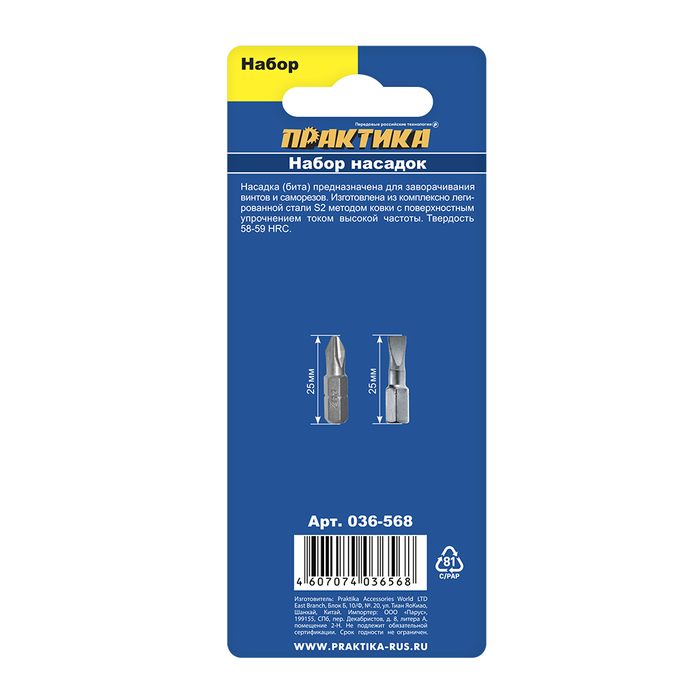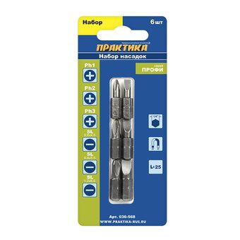 Набор бит ПРАКТИКА "Профи" 6шт PH1,2,3; SL 3 шт x 25мм, блистер (036-568) - цена, фото, технические характеристики