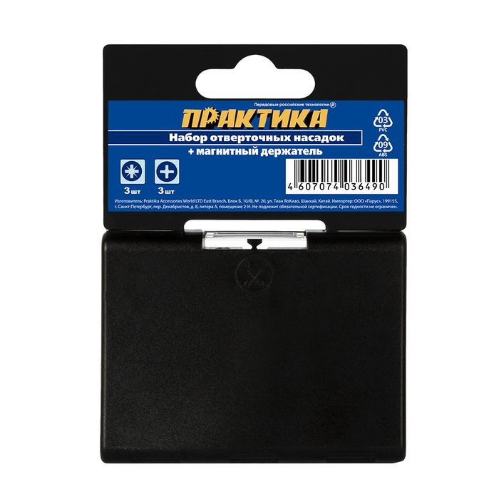 Набор бит ПРАКТИКА "Профи" 7шт PH1,2,3; PZ1,2,3 x 25мм, магнитный держатель, кассета (036-490) - цена, фото, технические характеристики