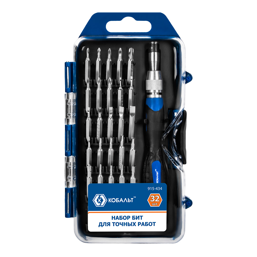 Набор бит с рукояткой КОБАЛЬТ 32 пр., CR-V (30 бит для точных работ + удл. + отв. рук-а) (915-434) - цена, фото, технические характеристики