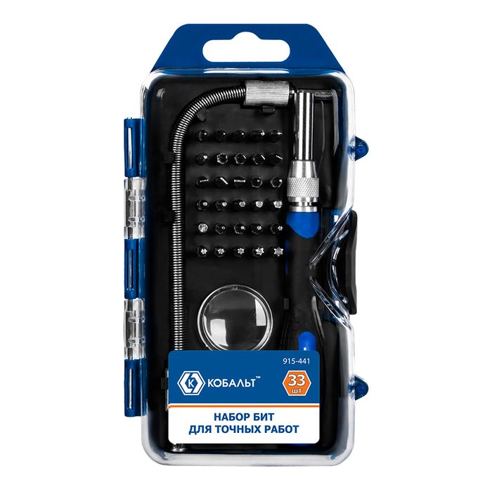 Набор  бит с рукояткой КОБАЛЬТ 33 пр., CR-V (30 бит для точных работ + увел. стекло + удл. + отв. рук-а) (915-441)