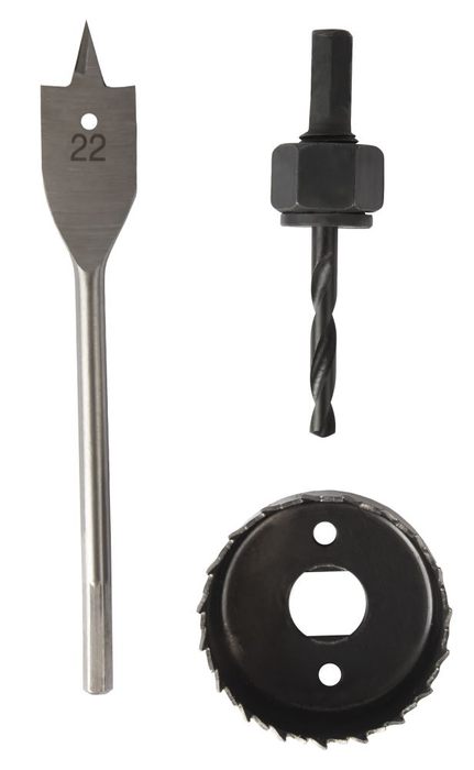 Набор для установки замков ПРАКТИКА : коронка 55 х 20 мм, перовое сверло 22 мм блистер (035-530)