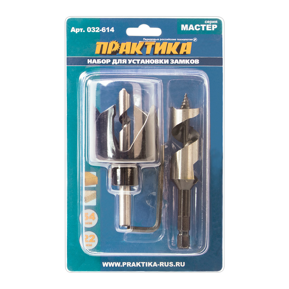 Набор для установки замков ПРАКТИКА коронка 54 х 40мм, винтовое сверло 22 мм блистер (032-614) - цена, фото, технические характеристики