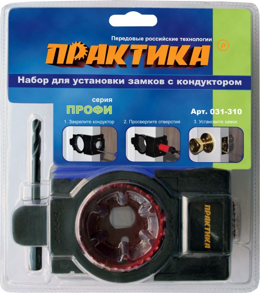 Набор для установки замков ПРАКТИКА с кондуктором, коронка 25 мм, коронка 54 мм, блистер (031-310) - цена, фото, технические характеристики