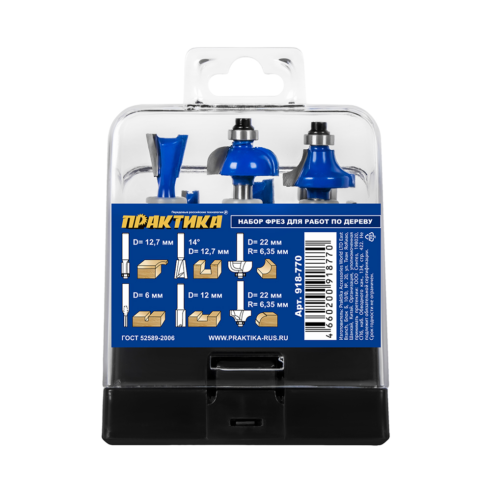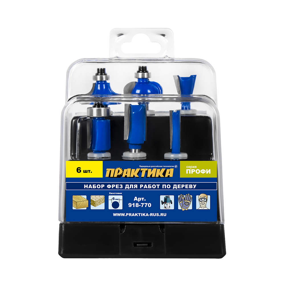 Набор фрез ПРАКТИКА по дереву 6 шт (хвостовик 6 мм) (918-770) - цена, фото, технические характеристики