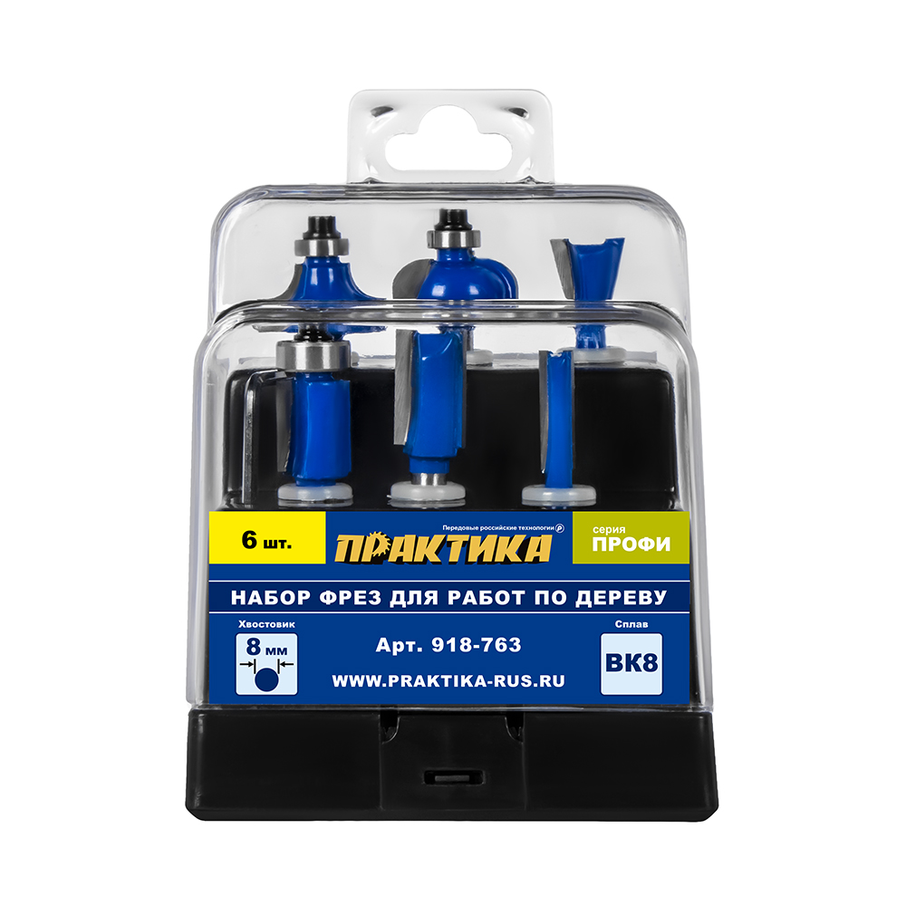 Набор фрез ПРАКТИКА по дереву 6 шт (хвостовик 8 мм) (918-763) - цена, фото, технические характеристики