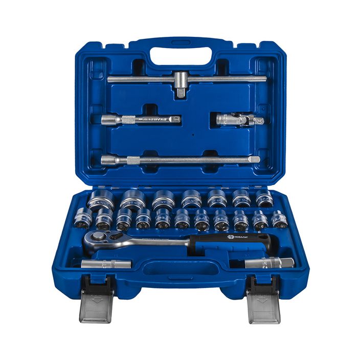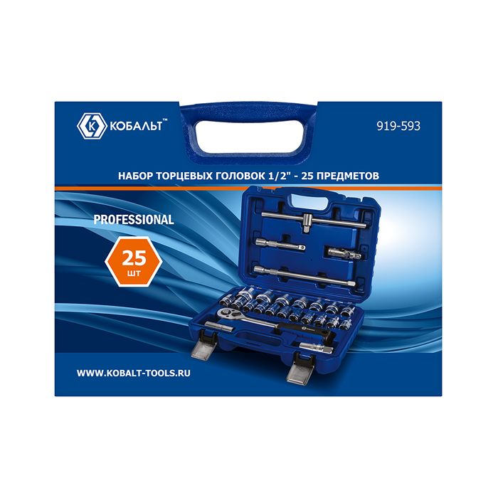 Набор головок торцевых КОБАЛЬТ с трещоткой, 1/2", 25 ПРЕДМЕТОВ (8-32 мм), CR-V, кейс (919-593) - цена, фото, технические характеристики