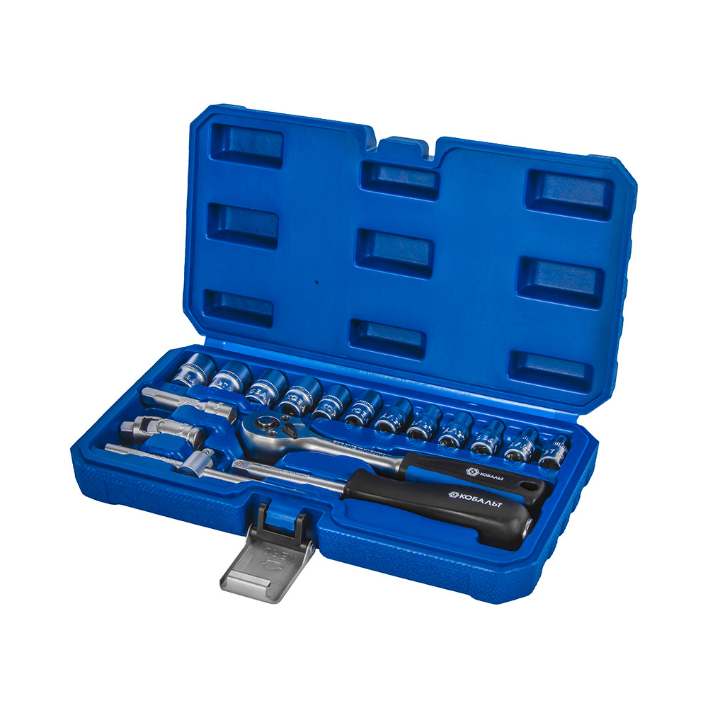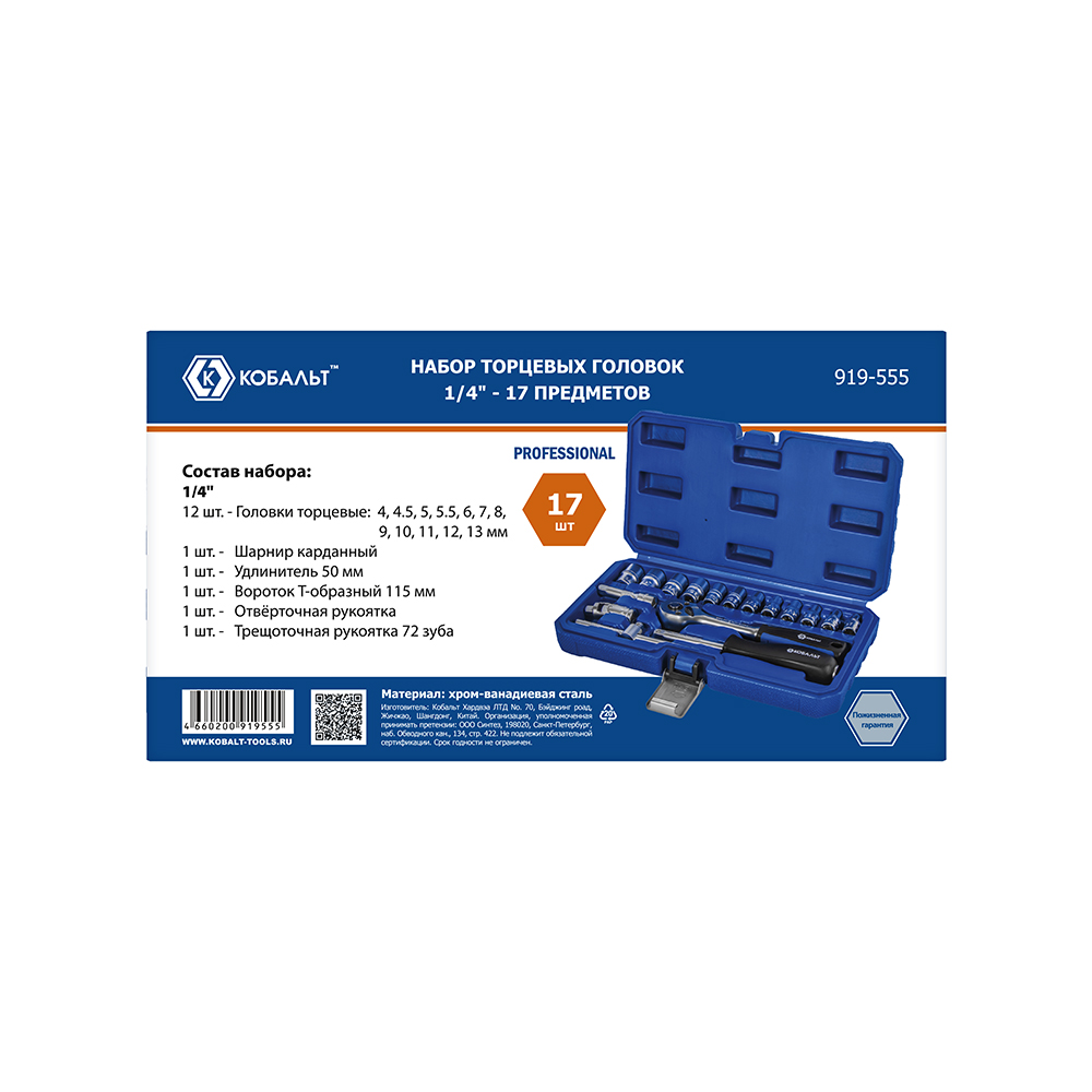 Набор головок торцевых КОБАЛЬТ с трещоткой 1/4", 17 ПРЕДМЕТОВ, CR-V, кейс (919-555) - цена, фото, технические характеристики