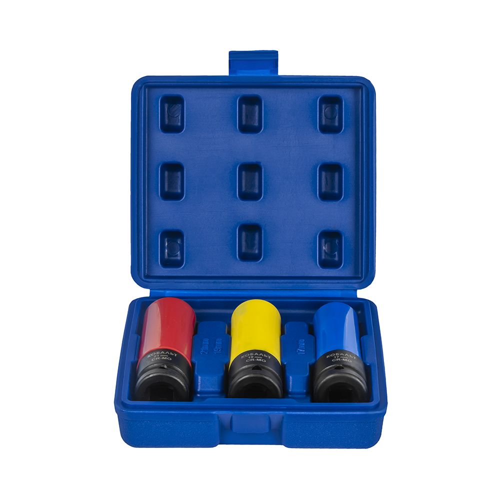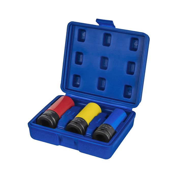 Набор головок торцевых ударных глубоких КОБАЛЬТ 1/2": 17, 19, 21 мм, для легкосплавных колесных дисков, CR-MO, 3 шт., кейс (923-972)