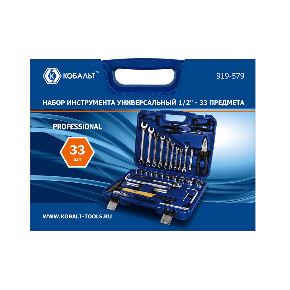 Набор инструмента универсальный КОБАЛЬТ 1/2", 33 ПРЕДМЕТА, кейс (919-579) - цена, фото, технические характеристики