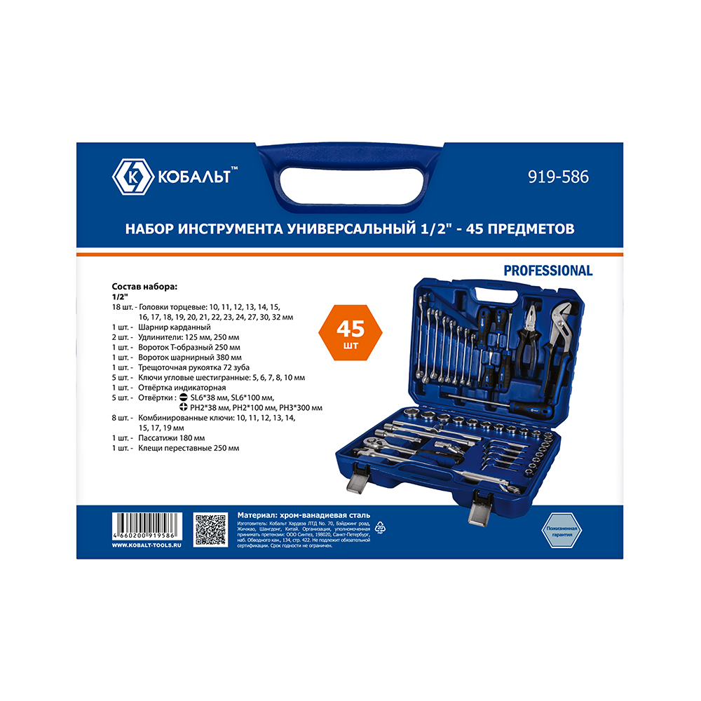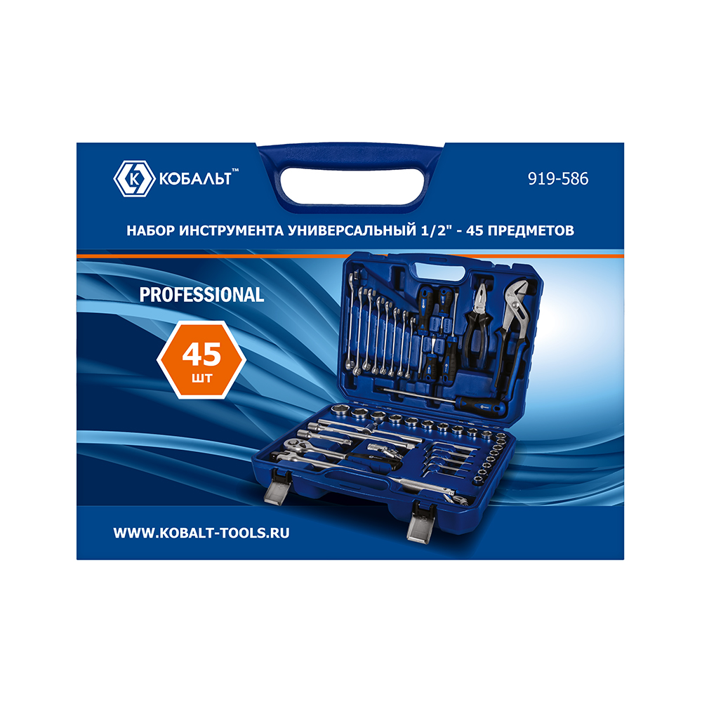 Набор инструмента универсальный КОБАЛЬТ 1/2", 45 ПРЕДМЕТОВ, кейс (919-586) - цена, фото, технические характеристики