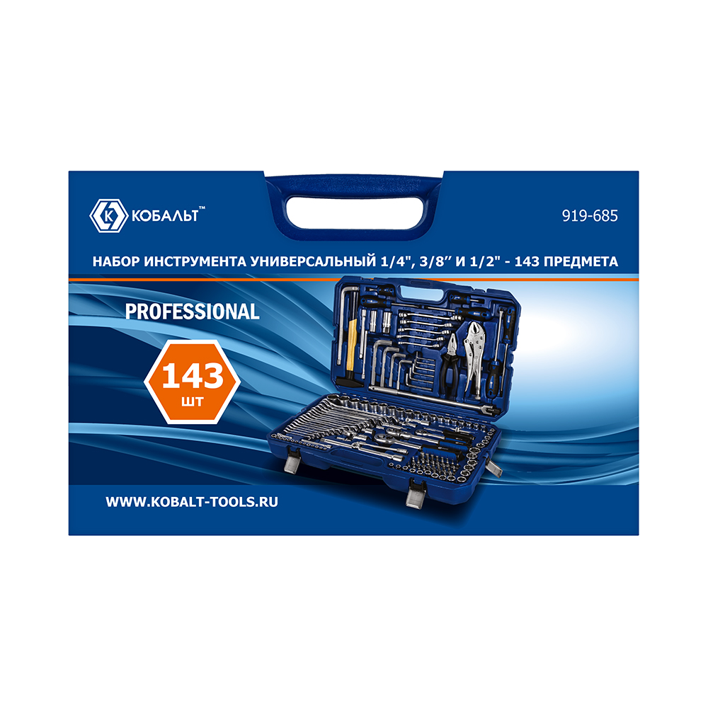 Набор инструмента универсальный КОБАЛЬТ 1/4", 3/8 и 1/2", 143 ПРЕДМЕТА, кейс (919-685) - цена, фото, технические характеристики