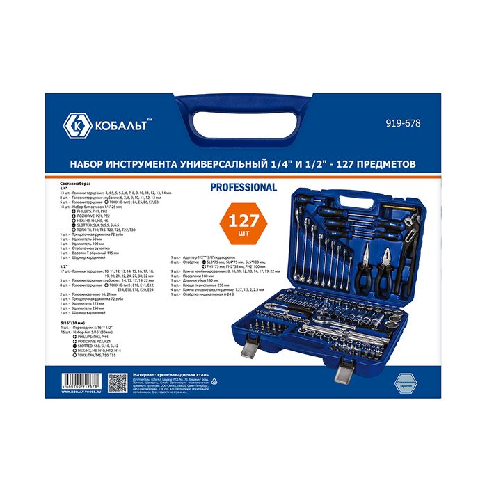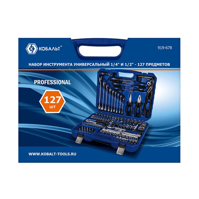 Набор инструмента универсальный КОБАЛЬТ 1/4" и 1/2", 127 ПРЕДМЕТОВ, кейс (919-678) - цена, фото, технические характеристики