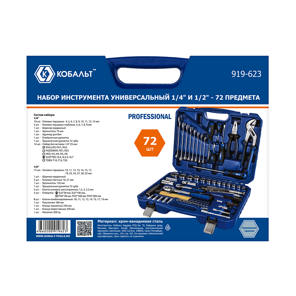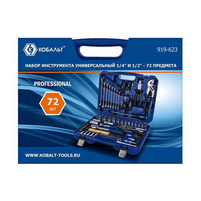 Набор инструмента универсальный КОБАЛЬТ 1/4" и 1/2", 72 ПРЕДМЕТА, кейс (919-623) - цена, фото, технические характеристики