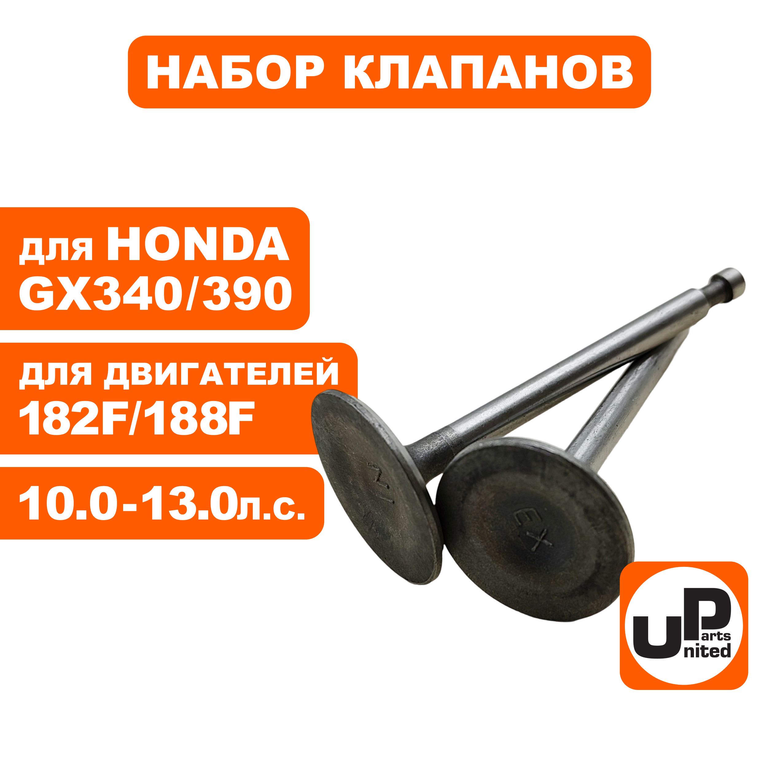 Клапан впускной и выпускной UNITED PARTS 182/188F, GX340/390 (впуск Ø35мм, выруск Ø31мм) - цена, фото, технические характеристики