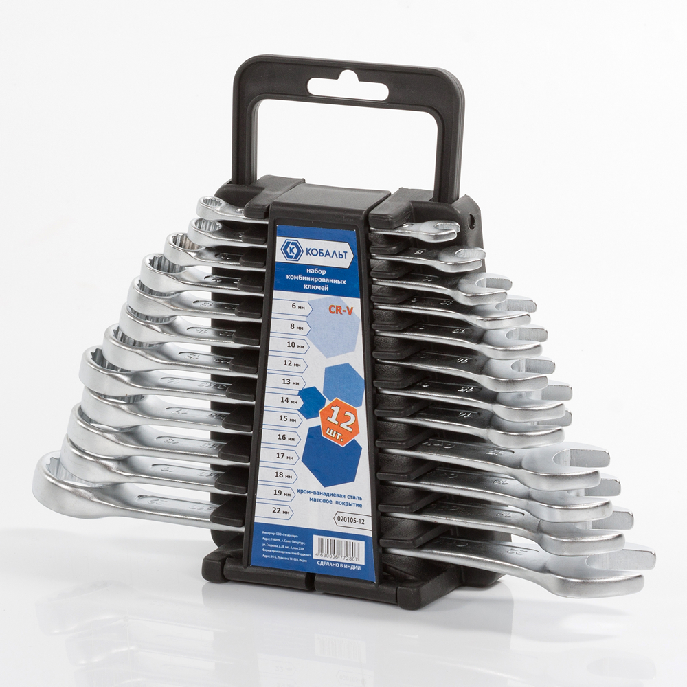 Набор ключей комбинированных КОБАЛЬТ 6,8,10,12,13,14,15,16,17,18,19,22 мм, 12 ШТ., держатель (020105-12) - цена, фото, технические характеристики