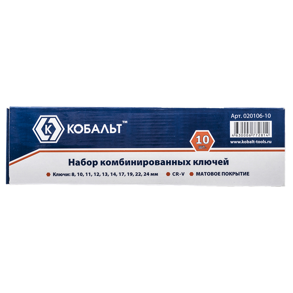Набор ключей комбинированных КОБАЛЬТ 8,10,11,12,13,14,17,19,22,24 мм, 10 ШТ., чехол-скрутка (020106-10) - цена, фото, технические характеристики