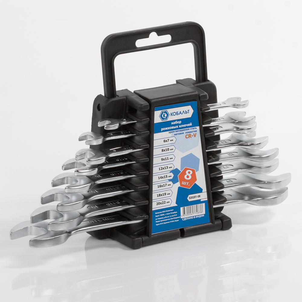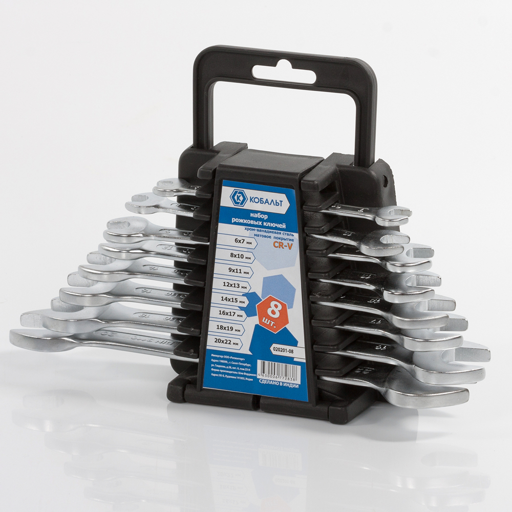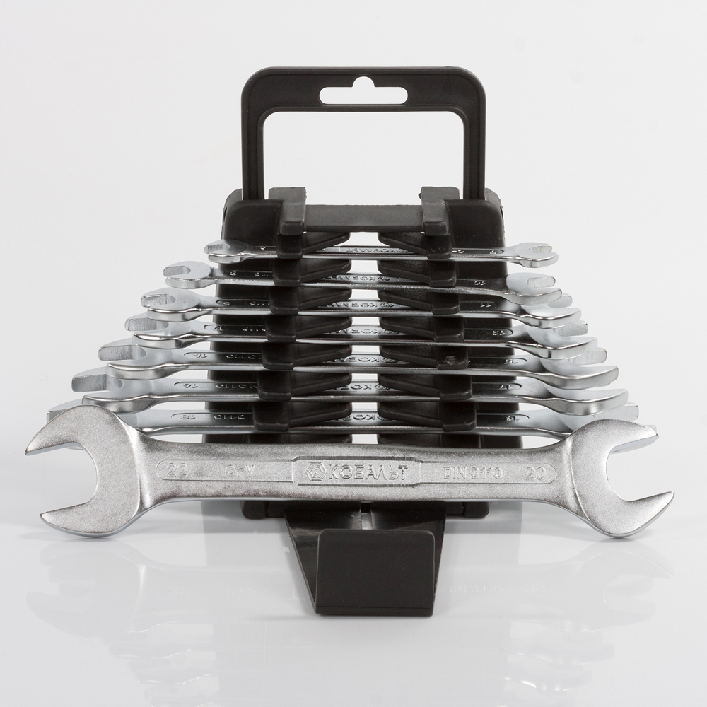 Набор ключей рожковых КОБАЛЬТ 6x7,8x10,9x11,12x13,14x15,16x17,18x19,20x22 мм, 8 ШТ., держатель (020201-08) - цена, фото, технические характеристики