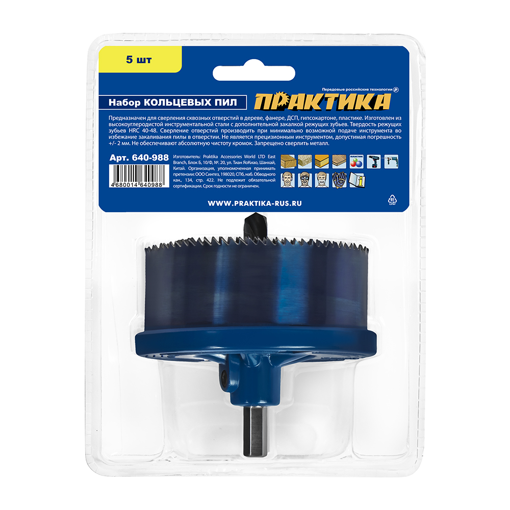 Набор кольцевых пил ПРАКТИКА 1,5", 60/68/75/82/95 мм, серия Мастер, блистер (640-988) - цена, фото, технические характеристики