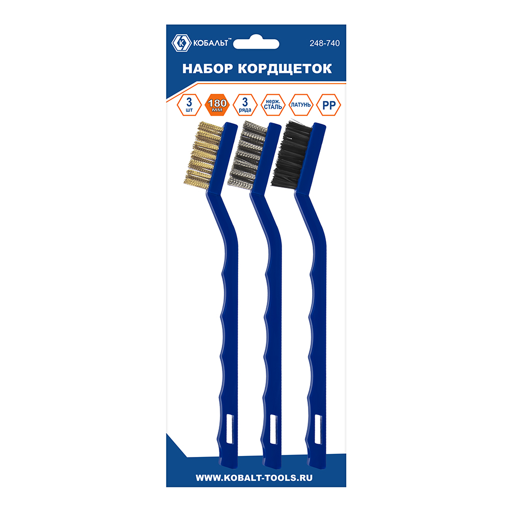 Набор кордщеток КОБАЛЬТ 180 мм, 3 ШТ., пластиковые рукоятки (248-740) - цена, фото, технические характеристики