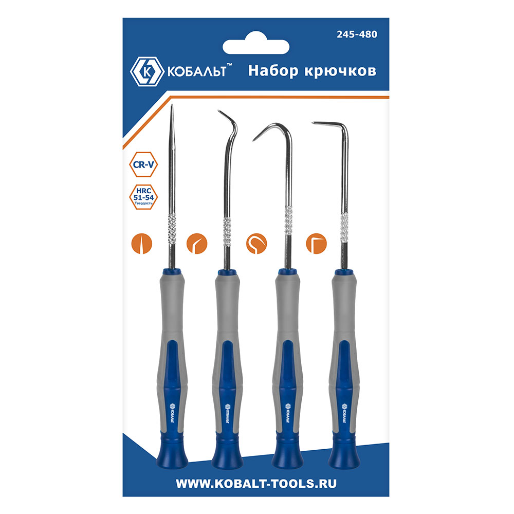Набор крючков КОБАЛЬТ для слесарных работ, CR-V, 4 шт. (245-480) - цена, фото, технические характеристики
