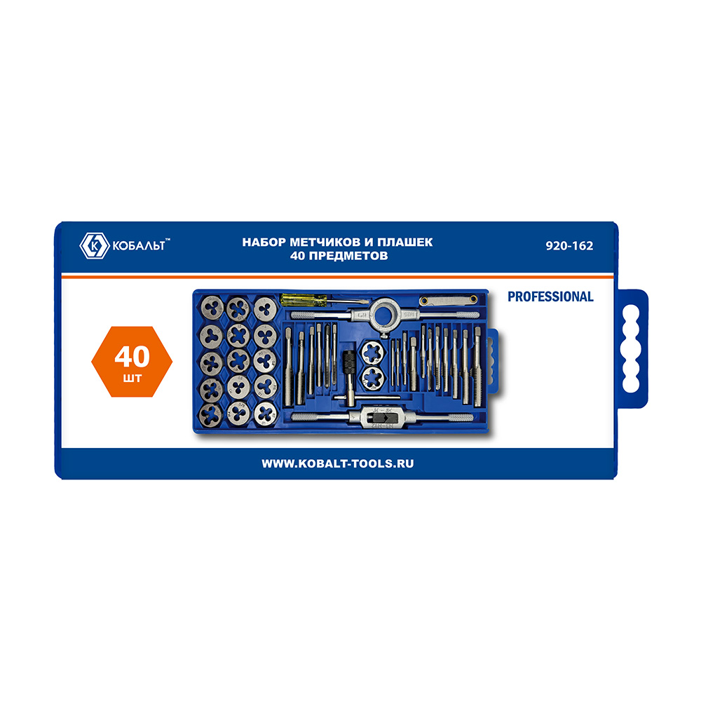 Набор метчиков и плашек КОБАЛЬТ метрических, 40 предметов, кейс (920-162) - цена, фото, технические характеристики