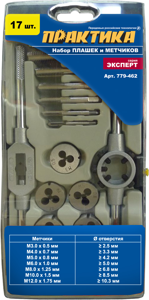 Набор метчиков и плашек ПРАКТИКА 17 шт, (779-462) - цена, фото, технические характеристики
