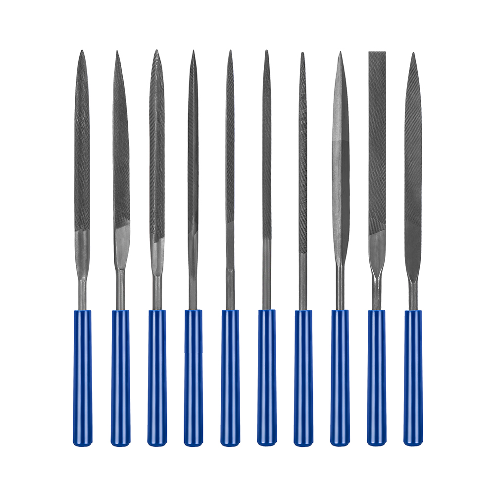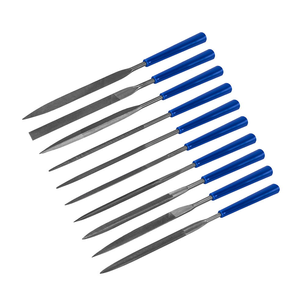 Набор надфилей КОБАЛЬТ насечка №1, длина рабочая/общая 160 х 70 мм, обрезиненные рукоятки, зернистость Р25, 10 ШТУК, блистер (790-120)