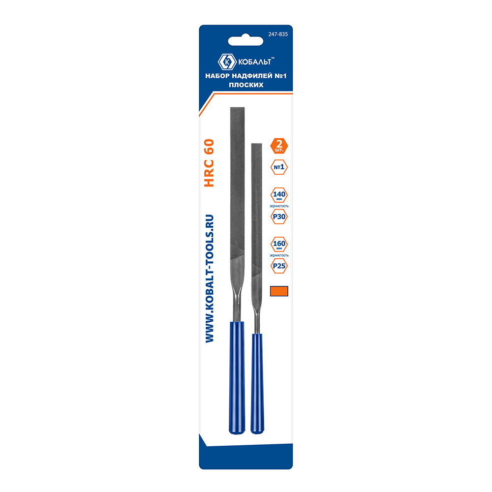 Набор надфилей КОБАЛЬТ плоских, насечка №1, длина рабочая/общая 140 х 60 мм (Р30) / 160 х 70 мм (Р25), 2 ШТУКИ, блистер (247-835) - цена, фото, технические характеристики