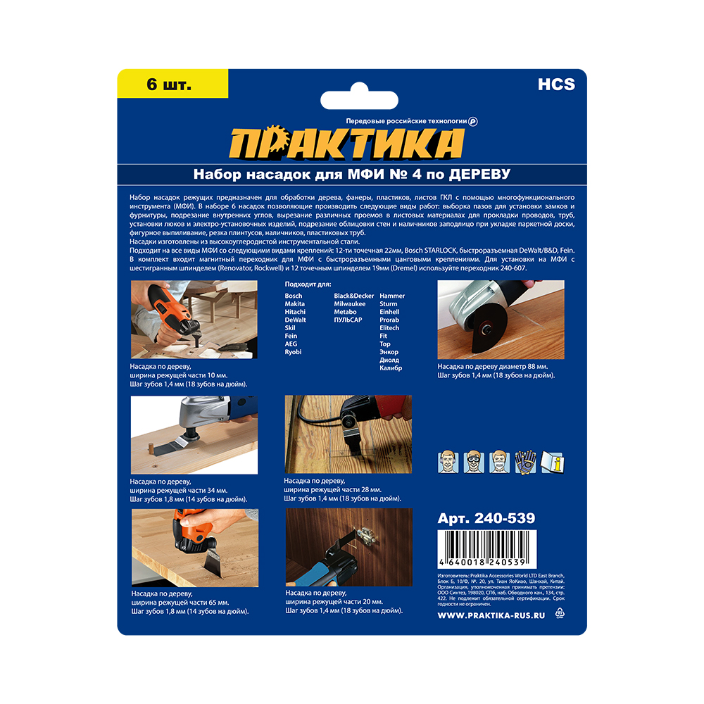 Набор насадок для МФИ ПРАКТИКА 6 шт по дереву №4 в блистере (240-539) - цена, фото, технические характеристики