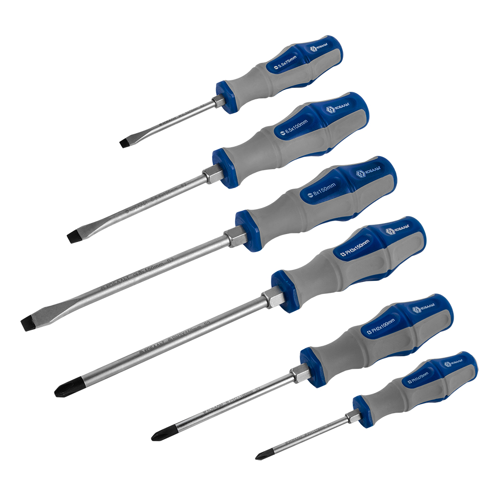 Набор отверток КОБАЛЬТ ударных Ultra Grip, 6 ШТ: РН1, РН2, РН3, SL 5.5, SL6.5, SL8, сталь S2, коробка (646-621) - цена, фото, технические характеристики