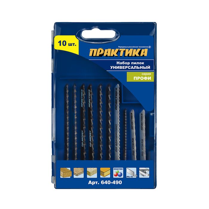 Набор пилок для лобзика ПРАКТИКА универсальный 7 типов, 10шт. ПРО кассета (640-490) - цена, фото, технические характеристики