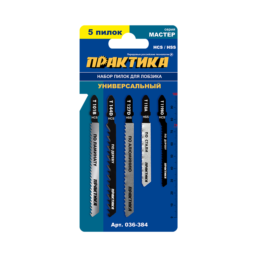 Набор пилок для лобзика ПРАКТИКА универсальный 5 типов, 5шт. картонная упаковка (036-384) - цена, фото, технические характеристики
